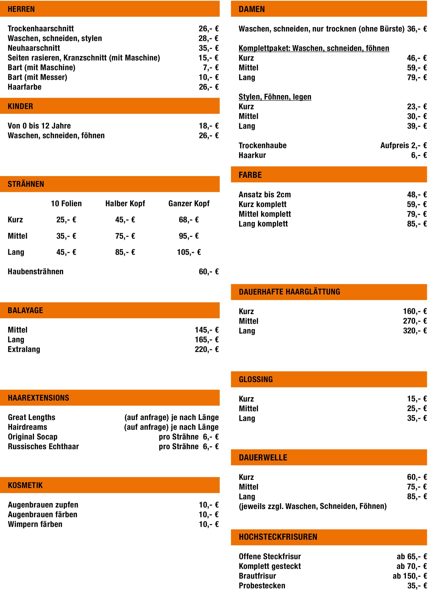 | Neuhaarschnitt | 35,- € |